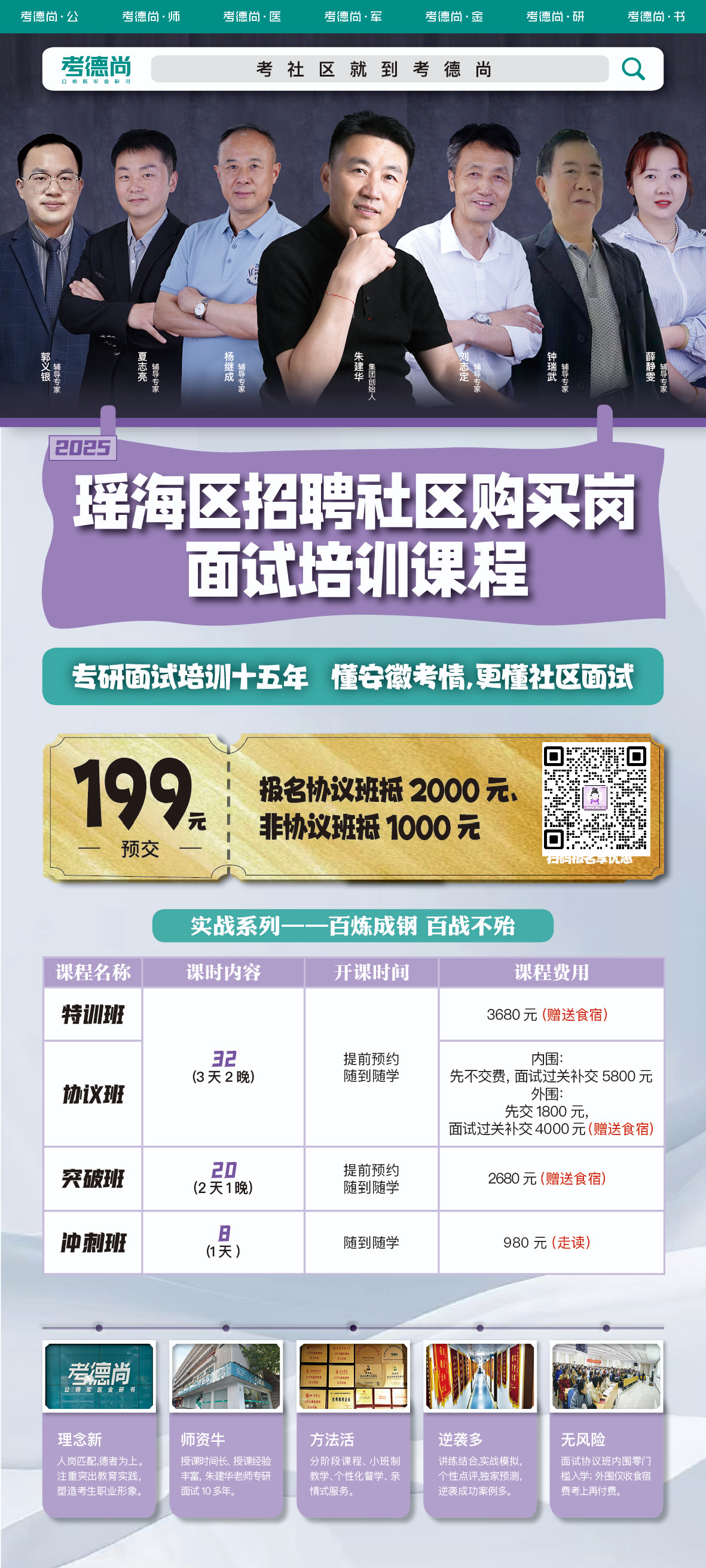 【考德尚】2025合肥瑶海区招聘社区购买岗面试培训课程