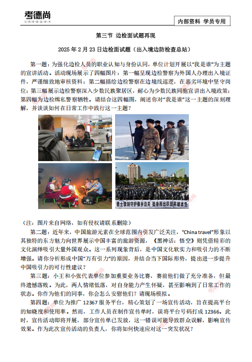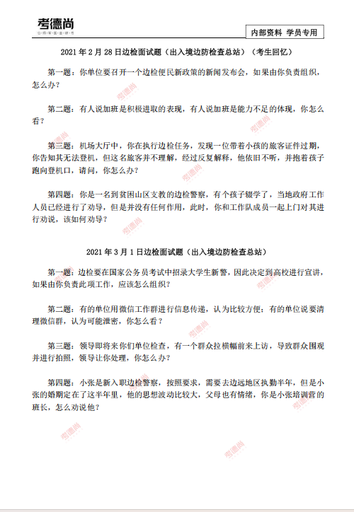 国考面试提前冲!边防检查站往年甄题实战演练,附文档