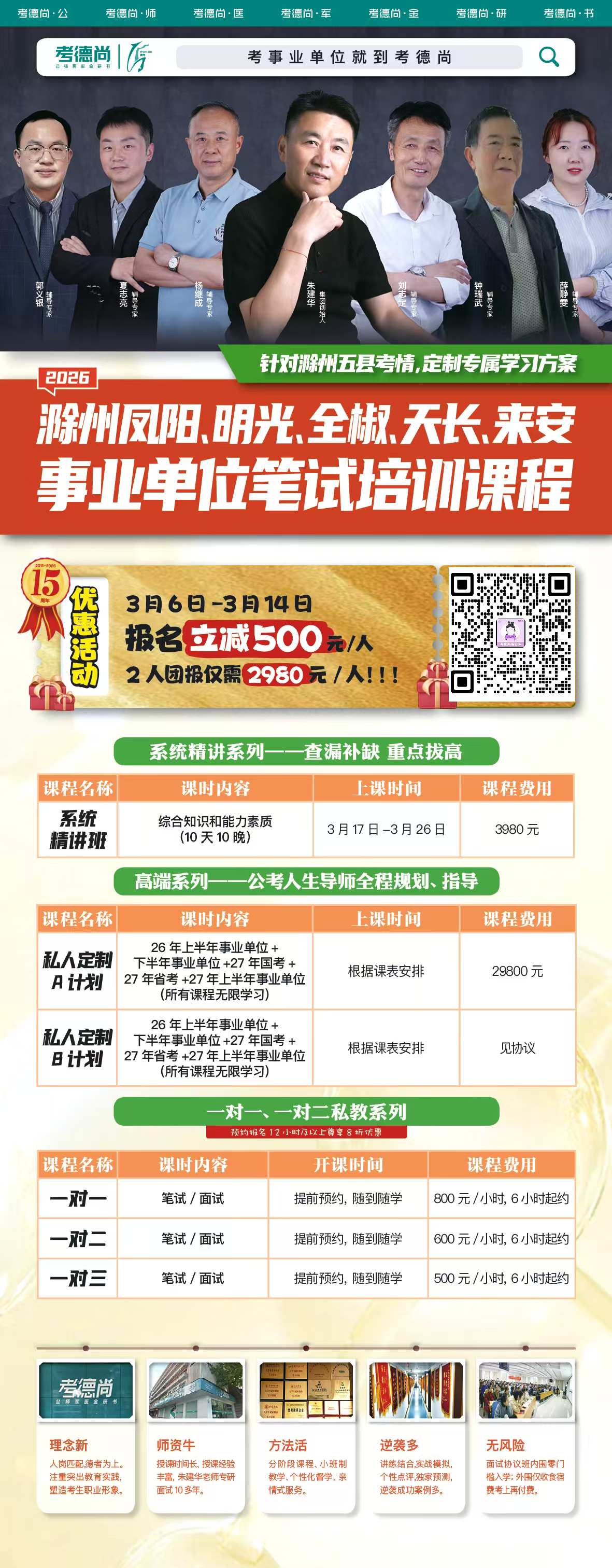 【考德尚】2026滁州凤阳/明光/全椒/天长/来安事业单位笔试培训课程